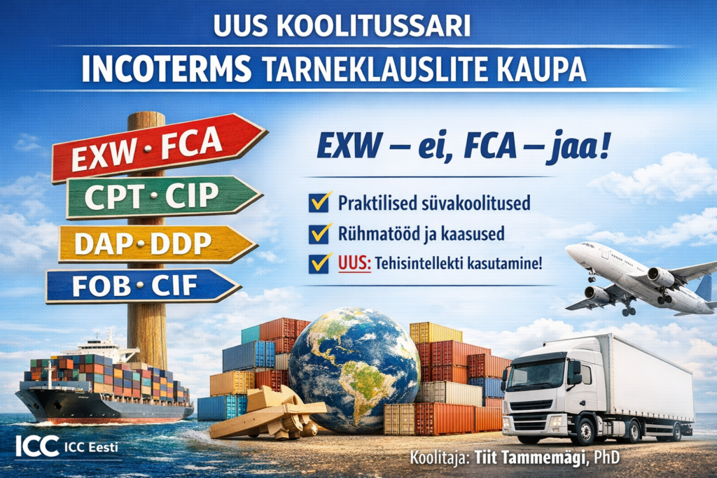 UUS KOOLITUSSARI: Incoterms üksikute tarneklauslite kaupa 2. jaan. 2026 Kommenteeri on UUS KOOLITUSSARI: Incoterms üksikute tarneklauslite kaupa Loe edasi